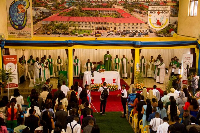 Sous le haut patronage de Mgr Willy NGUMBI NGENGELE, le Grand Chancelier de l’université catholique La Sapientia de Goma, une double cérémonie a eu lieu. la clôture de l’année académique 2024 – 2025 et la collation des grades académiques qui a été effectuée à 113 étudiants ayant fini leur cycle universitaire. Pour certains, c’est la licence et pour d’autres le master.